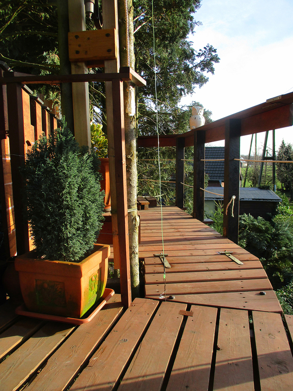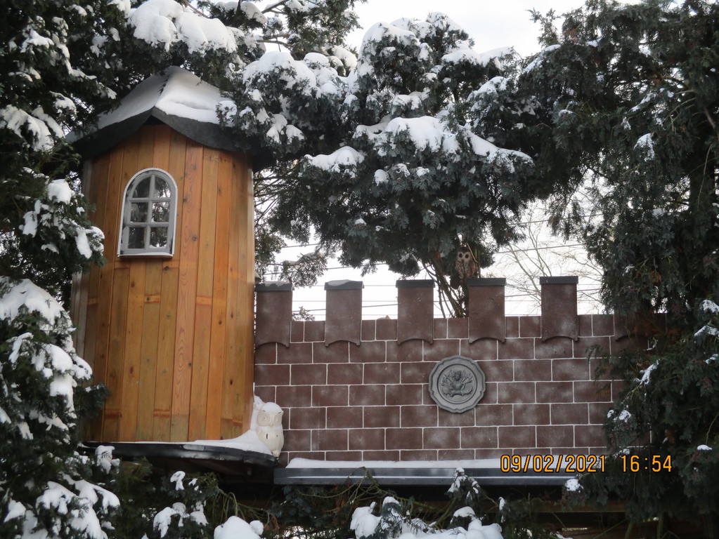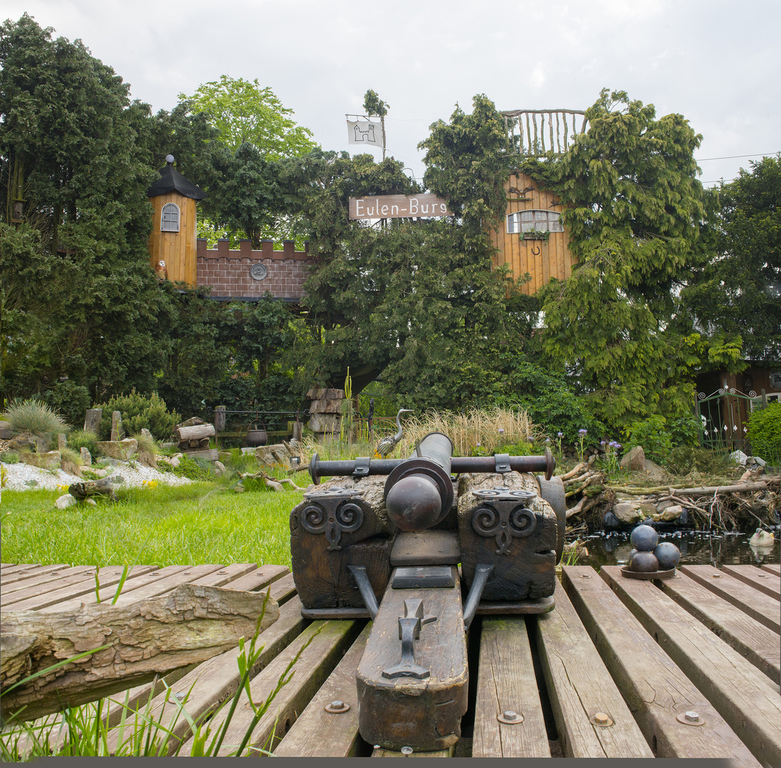 In meinem Garten in Kleve entstand über viele Jahre hinweg ein großangelegtes Baumhaus. Die Eulenburg.